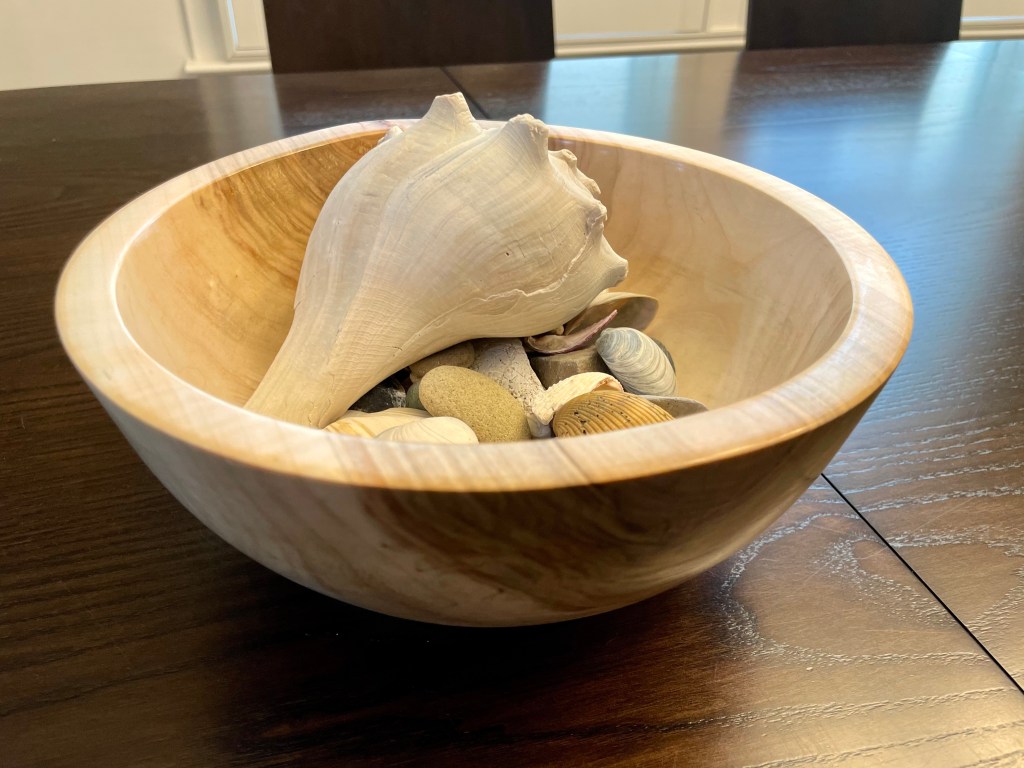 “You can’t call a bowl finished when it’s not. It’s worth taking the time to make sure that it’s right. I had one almost done, but I had to strip it completely, re-carve it, re-sand it, re-oil it and refinish it,” he said. “So the lesson I learned was when it comes to filling cracks, don’t rush it.”